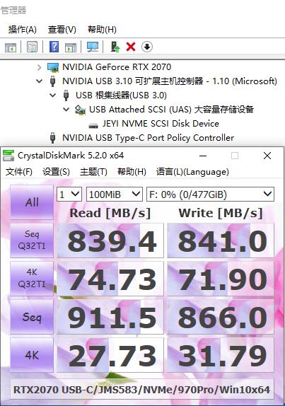 gzkevin88 发表于 2019-4-7 23:58 正好有一台MiiX520,用i9测试了一下,性能就是USB 3.0的性能